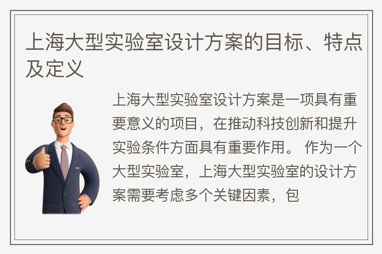 上海大型实验室设计方案的目标、特点及定义