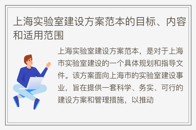 上海实验室建设方案范本的目标、内容和适用范围