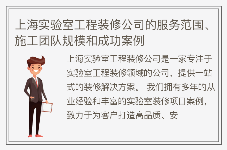 上海实验室工程装修公司的服务范围、施工团队规模和成功案例