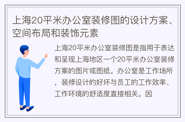 上海20平米办公室装修图的设计方案、空间布局和装饰元素