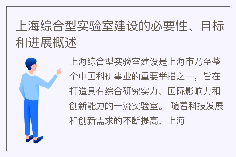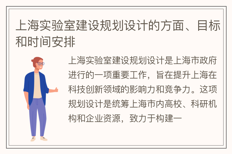 上海实验室建设规划设计是上海市政府进行的一项重要工作,旨在提升上海在科技创新领域的影响力和竞争力。这项规划设计是统筹上海市内高校、科研机构和企业资源,致力于构建一......【点击详情】