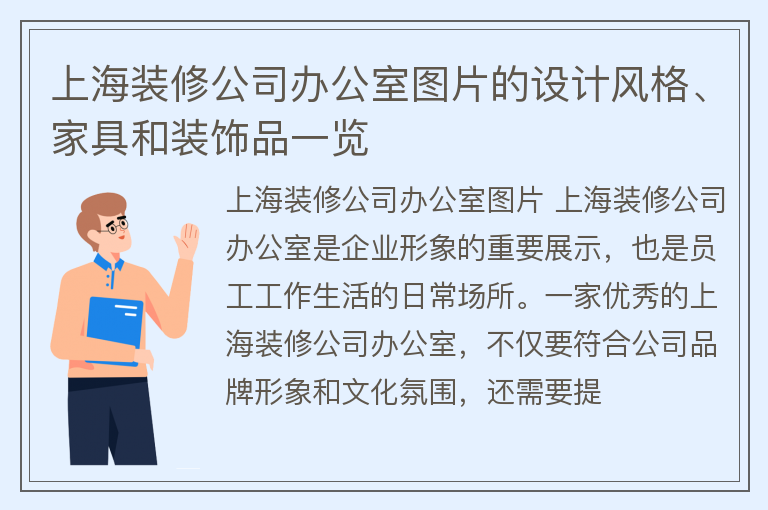 上海装修公司办公室图片的设计风格、家具和装饰品一览