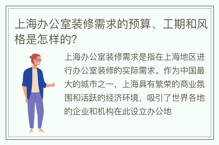 上海办公室装修需求的预算、工期和风格是怎样的?