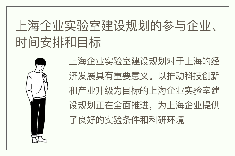 上海企业实验室建设规划的参与企业、时间安排和目标