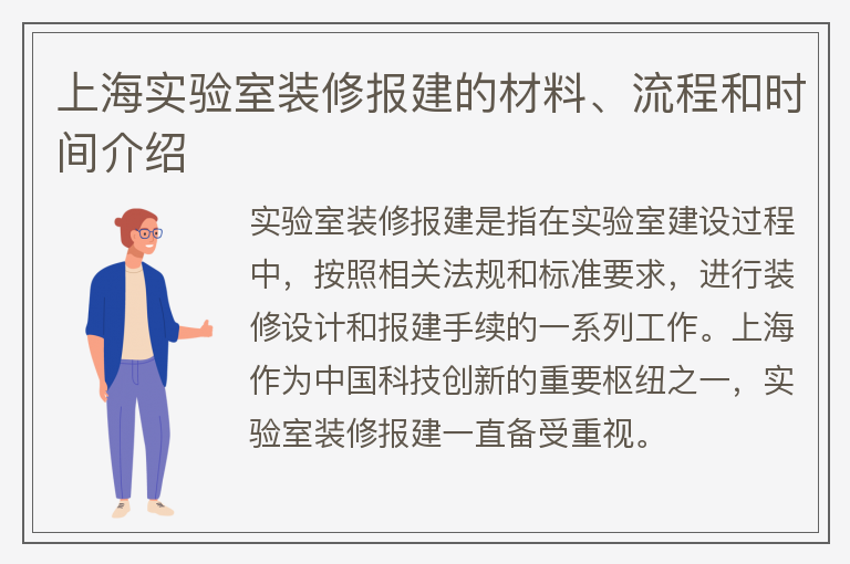实验室装修报建是指在实验室建设过程中,按照相关法规和标准要求,进行装修设计和报建手续的一系列工作。上海作为中国科技创新的重要枢纽之一,实验室装修报建一直备受重视。......【点击详情】