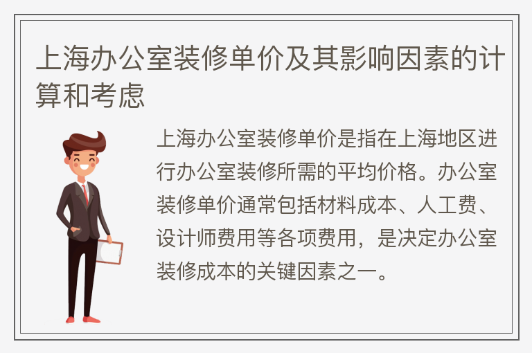 上海办公室装修单价及其影响因素的计算和考虑