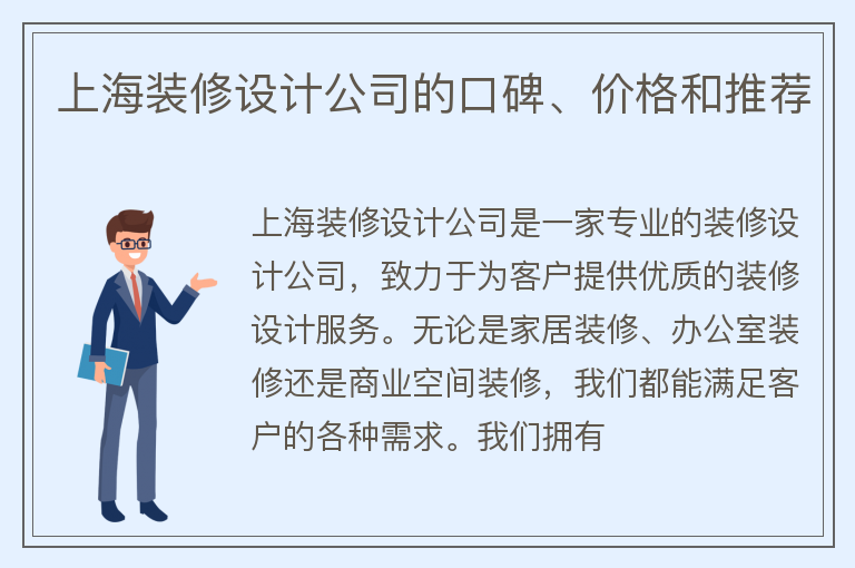 上海装修设计公司的口碑、价格和推荐