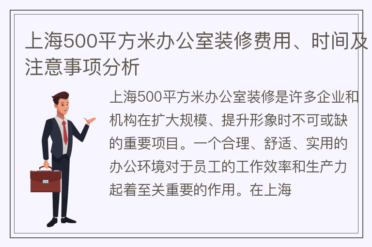 上海500平方米办公室装修是许多企业和机构在扩大规模、提升形象时不可或缺的重要项目。一个合理、舒适、实用的办公环境对于员工的工作效率和生产力起着至关重要的作用。在上海......【点击详情】