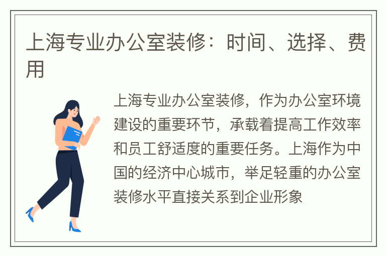 上海专业办公室装修,作为办公室环境建设的重要环节,承载着提高工作效率和员工舒适度的重要任务。上海作为中国的经济中心城市,举足轻重的办公室装修水平直接关系到企业形象......【点击详情】