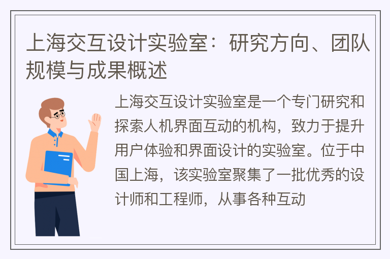 上海交互设计实验室:研究方向、团队规模与成果概述