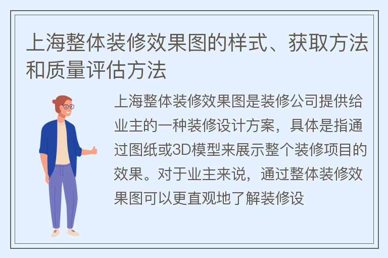 上海整体装修效果图的样式、获取方法和质量评估方法