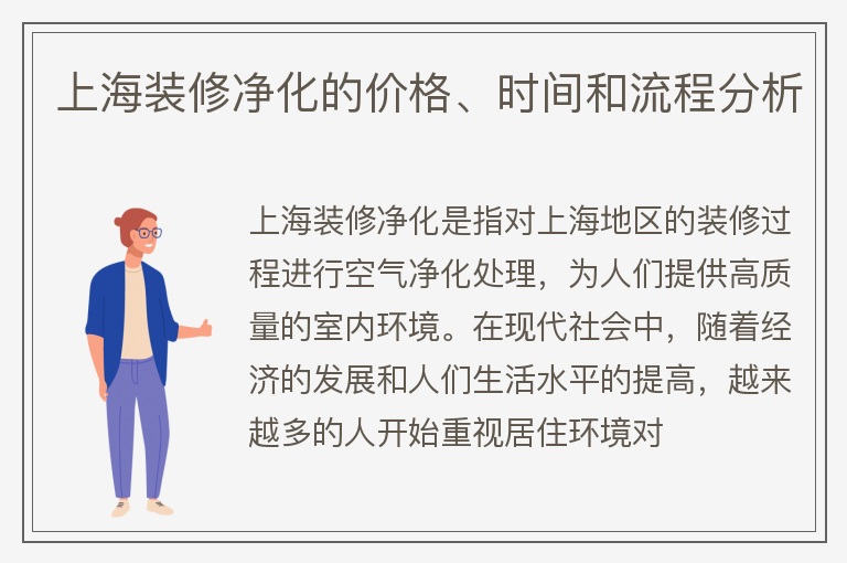 上海装修净化的价格、时间和流程分析
