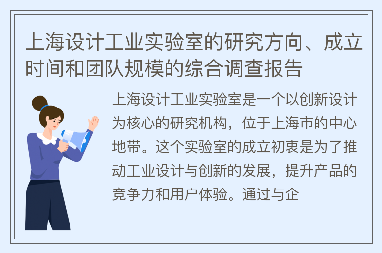 上海设计工业实验室的研究方向、成立时间和团队规模的综合调查报告