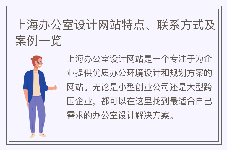 上海办公室设计网站是一个专注于为企业提供优质办公环境设计和规划方案的网站。无论是小型创业公司还是大型跨国企业,都可以在这里找到最适合自己需求的办公室设计解决方案。......【点击详情】