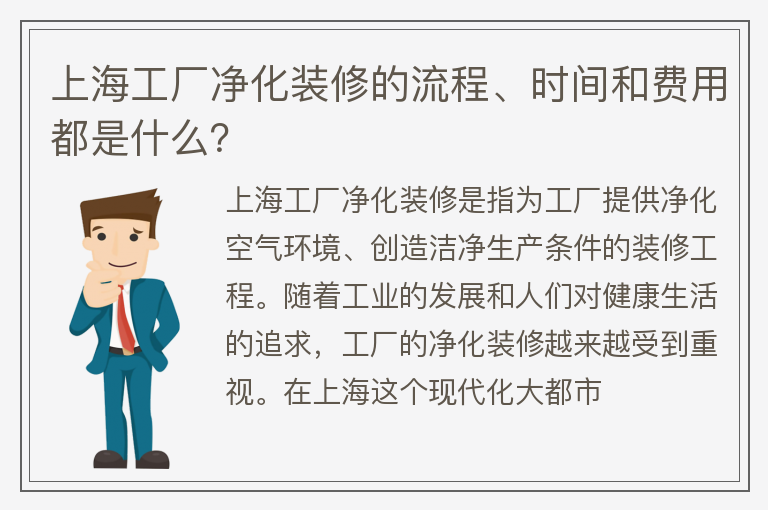 上海工厂净化装修是指为工厂提供净化空气环境、创造洁净生产条件的装修工程。随着工业的发展和人们对健康生活的追求,工厂的净化装修越来越受到重视。在上海这个现代化大都市......【点击详情】