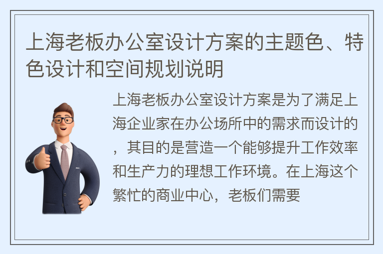 上海老板办公室设计方案的主题色、特色设计和空间规划说明