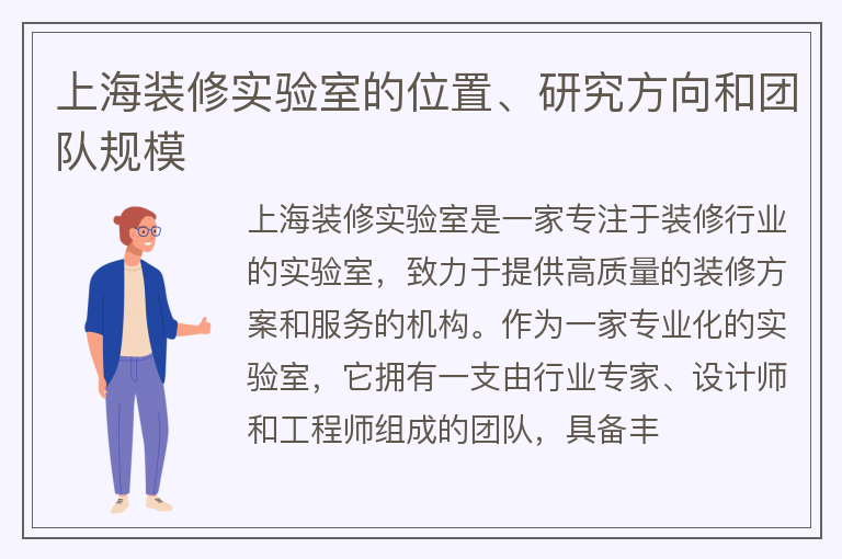 上海工程设计实验室的研究领域、历史和团队规模综述