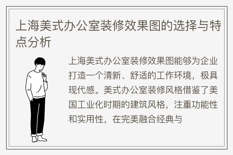 上海美式办公室装修效果图能够为企业打造一个清新、舒适的工作环境,极具现代感。美式办公室装修风格借鉴了美国工业化时期的建筑风格,注重功能性和实用性,在完美融合经典与......【点击详情】
