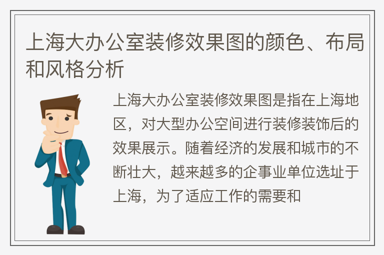 上海大办公室装修效果图是指在上海地区,对大型办公空间进行装修装饰后的效果展示。随着经济的发展和城市的不断壮大,越来越多的企事业单位选址于上海,为了适应工作的需要和......【点击详情】
