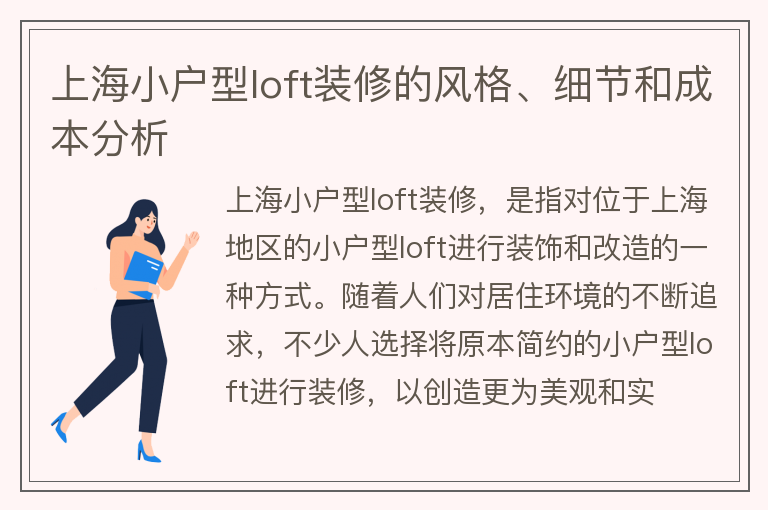 上海小户型loft装修,是指对位于上海地区的小户型loft进行装饰和改造的一种方式。随着人们对居住环境的不断追求,不少人选择将原本简约的小户型loft进行装修,以创造更为美观和实......【点击详情】