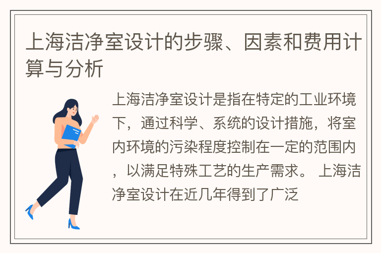 上海洁净室设计是指在特定的工业环境下,通过科学、系统的设计措施,将室内环境的污染程度控制在一定的范围内,以满足特殊工艺的生产需求。 上海洁净室设计在近几年得到了广泛......【点击详情】