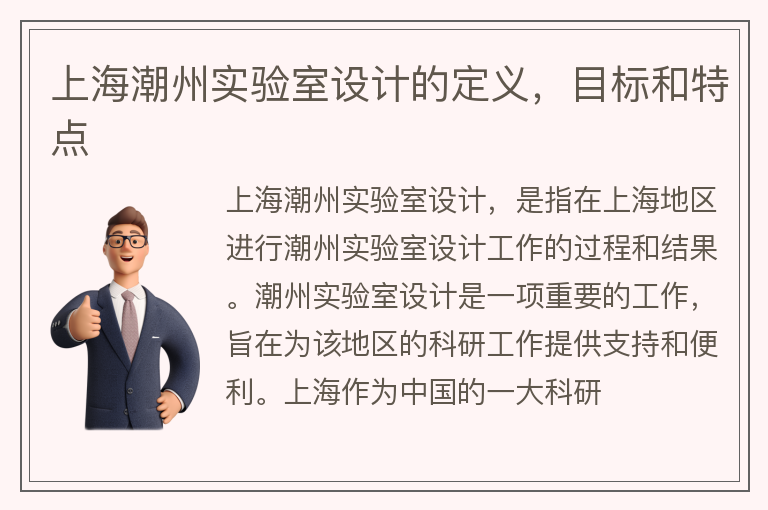 上海潮州实验室设计,是指在上海地区进行潮州实验室设计工作的过程和结果。潮州实验室设计是一项重要的工作,旨在为该地区的科研工作提供支持和便利。上海作为中国的一大科研......【点击详情】
