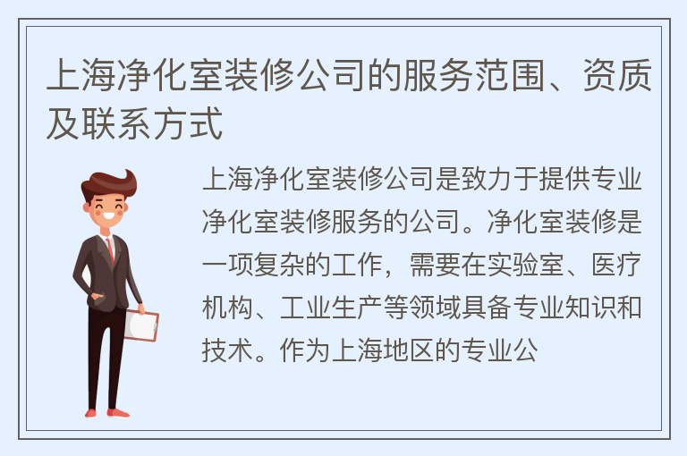 上海净化室装修公司是致力于提供专业净化室装修服务的公司。净化室装修是一项复杂的工作,需要在实验室、医疗机构、工业生产等领域具备专业知识和技术。作为上海地区的专业公......【点击详情】