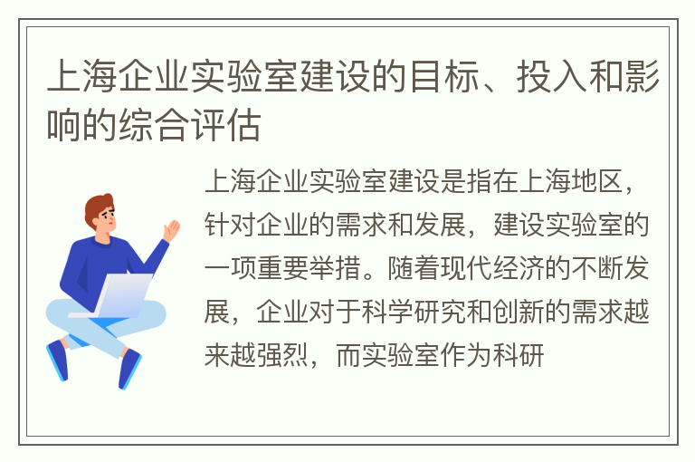 上海企业实验室建设是指在上海地区,针对企业的需求和发展,建设实验室的一项重要举措。随着现代经济的不断发展,企业对于科学研究和创新的需求越来越强烈,而实验室作为科研......【点击详情】