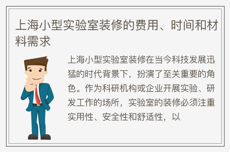 上海小型实验室装修在当今科技发展迅猛的时代背景下,扮演了至关重要的角色。作为科研机构或企业开展实验、研发工作的场所,实验室的装修必须注重实用性、安全性和舒适性,以......【点击详情】