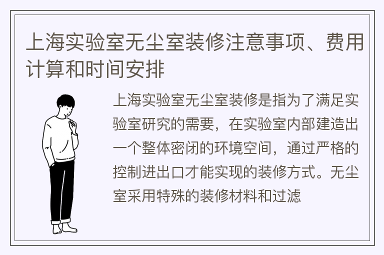 上海实验室无尘室装修注意事项、费用计算和时间安排