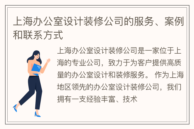 上海办公室设计装修公司是一家位于上海的专业公司,致力于为客户提供高质量的办公室设计和装修服务。 作为上海地区领先的办公室设计装修公司,我们拥有一支经验丰富、技术......【点击详情】