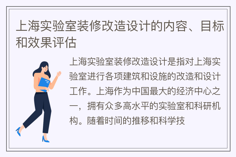 上海实验室装修改造设计是指对上海实验室进行各项建筑和设施的改造和设计工作。上海作为中国最大的经济中心之一,拥有众多高水平的实验室和科研机构。随着时间的推移和科学技......【点击详情】