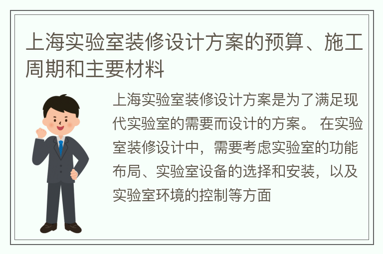 上海实验室装修设计方案的预算、施工周期和主要材料