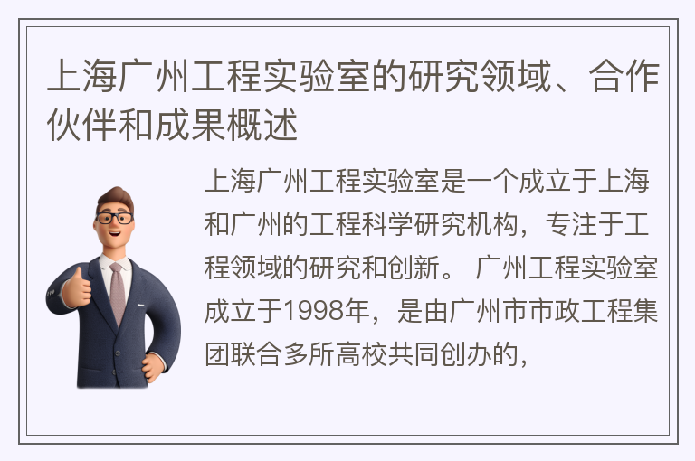 上海广州工程实验室的研究领域、合作伙伴和成果概述