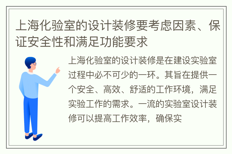 上海化验室的设计装修要考虑因素、保证安全性和满足功能要求