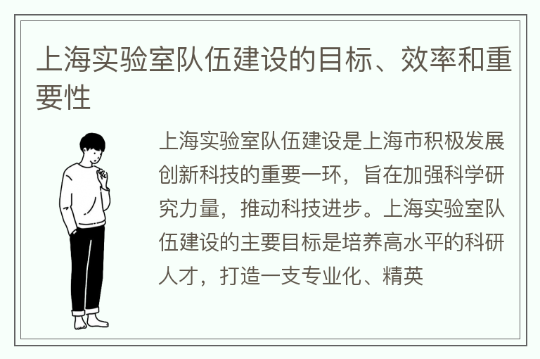 上海实验室队伍建设是上海市积极发展创新科技的重要一环,旨在加强科学研究力量,推动科技进步。上海实验室队伍建设的主要目标是培养高水平的科研人才,打造一支专业化、精英......【点击详情】