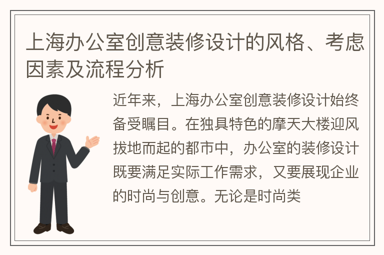 上海办公室创意装修设计的风格、考虑因素及流程分析
