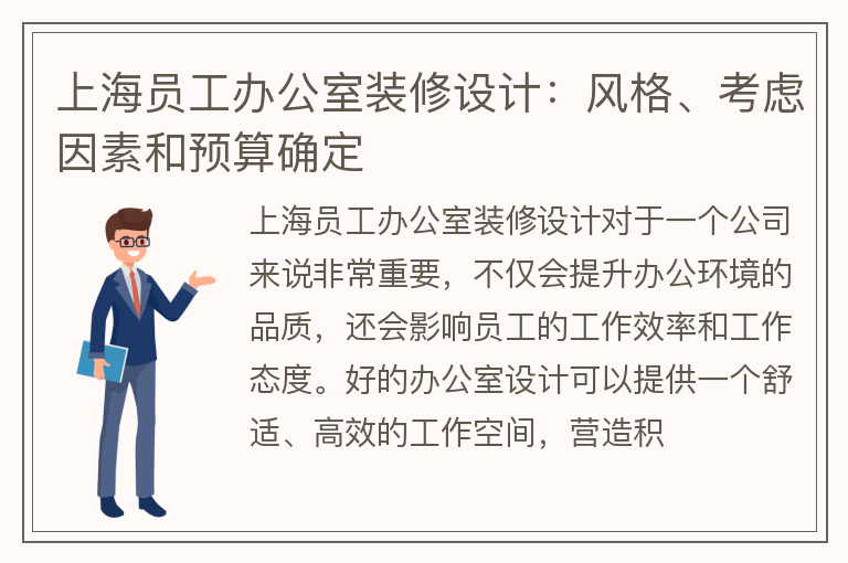 上海员工办公室装修设计:风格、考虑因素和预算确定