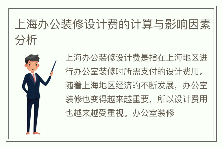 上海办公装修设计费是指在上海地区进行办公室装修时所需支付的设计费用。随着上海地区经济的不断发展,办公室装修也变得越来越重要,所以设计费用也越来越受重视。办公室装修......【点击详情】
