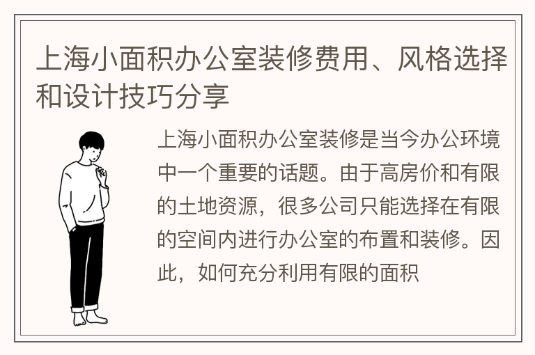 上海小面积办公室装修费用、风格选择和设计技巧分享
