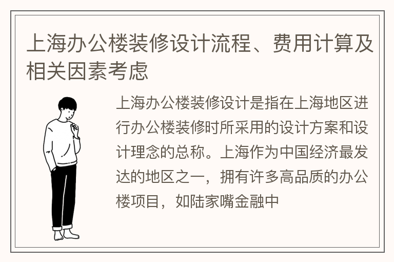上海办公楼装修设计流程、费用计算及相关因素考虑