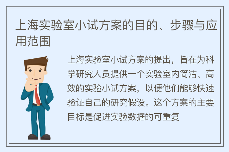 上海实验室小试方案的提出,旨在为科学研究人员提供一个实验室内简洁、高效的实验小试方案,以便他们能够快速验证自己的研究假设。这个方案的主要目标是促进实验数据的可重复......【点击详情】