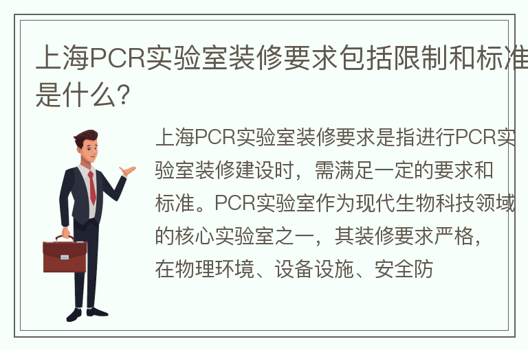 上海PCR实验室装修要求是指进行PCR实验室装修建设时,需满足一定的要求和标准。PCR实验室作为现代生物科技领域的核心实验室之一,其装修要求严格,在物理环境、设备设施、安全防......【点击详情】