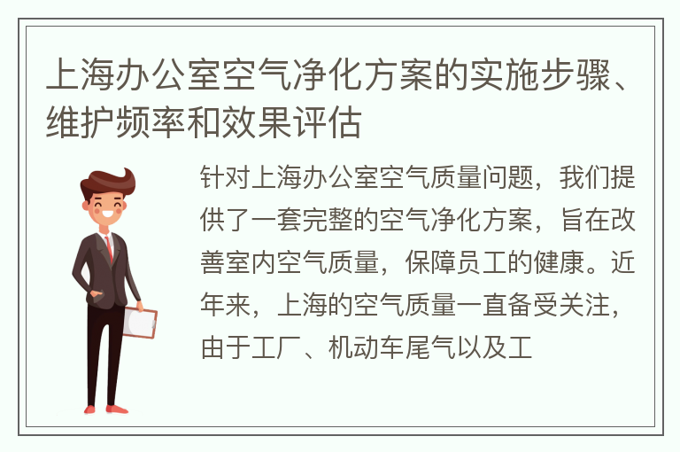 上海办公室空气净化方案的实施步骤、维护频率和效果评估