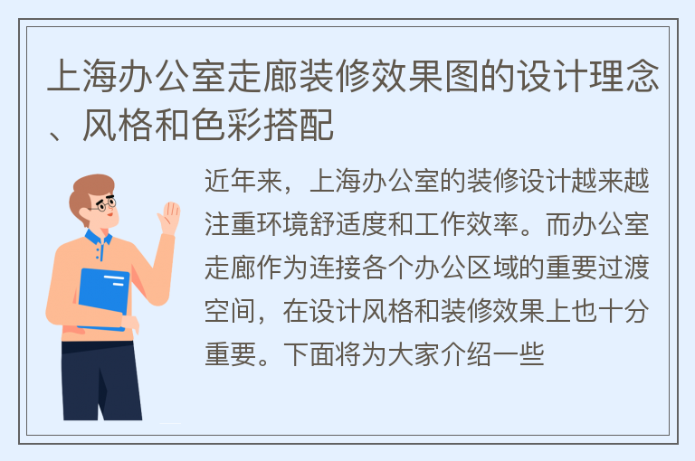 上海办公室走廊装修效果图的设计理念、风格和色彩搭配