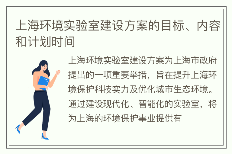 上海环境实验室建设方案为上海市政府提出的一项重要举措,旨在提升上海环境保护科技实力及优化城市生态环境。通过建设现代化、智能化的实验室,将为上海的环境保护事业提供有......【点击详情】