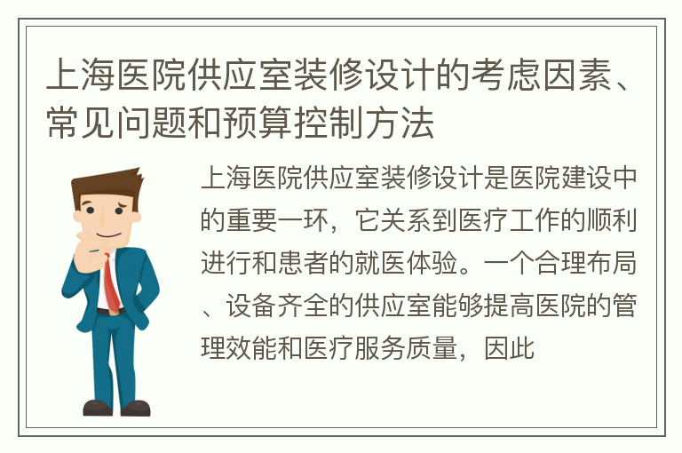 上海医院供应室装修设计的考虑因素、常见问题和预算控制方法