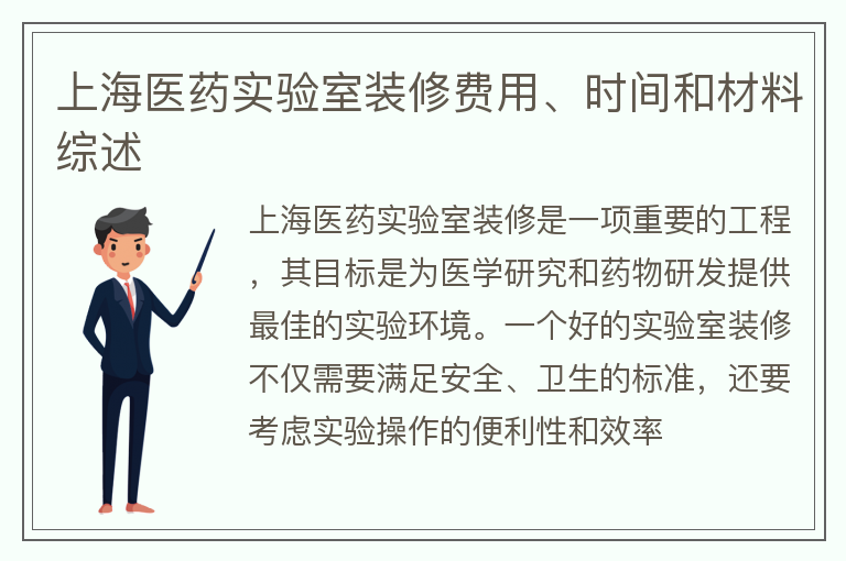上海医药实验室装修是一项重要的工程,其目标是为医学研究和药物研发提供最佳的实验环境。一个好的实验室装修不仅需要满足安全、卫生的标准,还要考虑实验操作的便利性和效率......【点击详情】