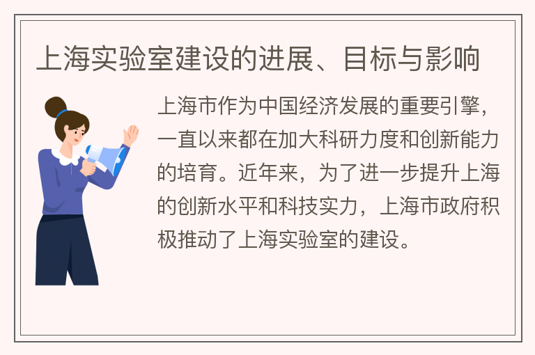 上海市作为中国经济发展的重要引擎,一直以来都在加大科研力度和创新能力的培育。近年来,为了进一步提升上海的创新水平和科技实力,上海市政府积极推动了上海实验室的建设。......【点击详情】