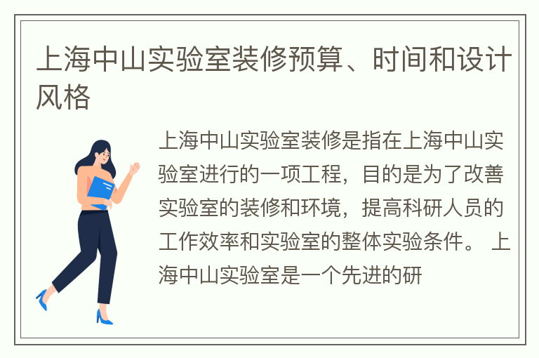 上海中山实验室装修是指在上海中山实验室进行的一项工程,目的是为了改善实验室的装修和环境,提高科研人员的工作效率和实验室的整体实验条件。 上海中山实验室是一个先进的研......【点击详情】